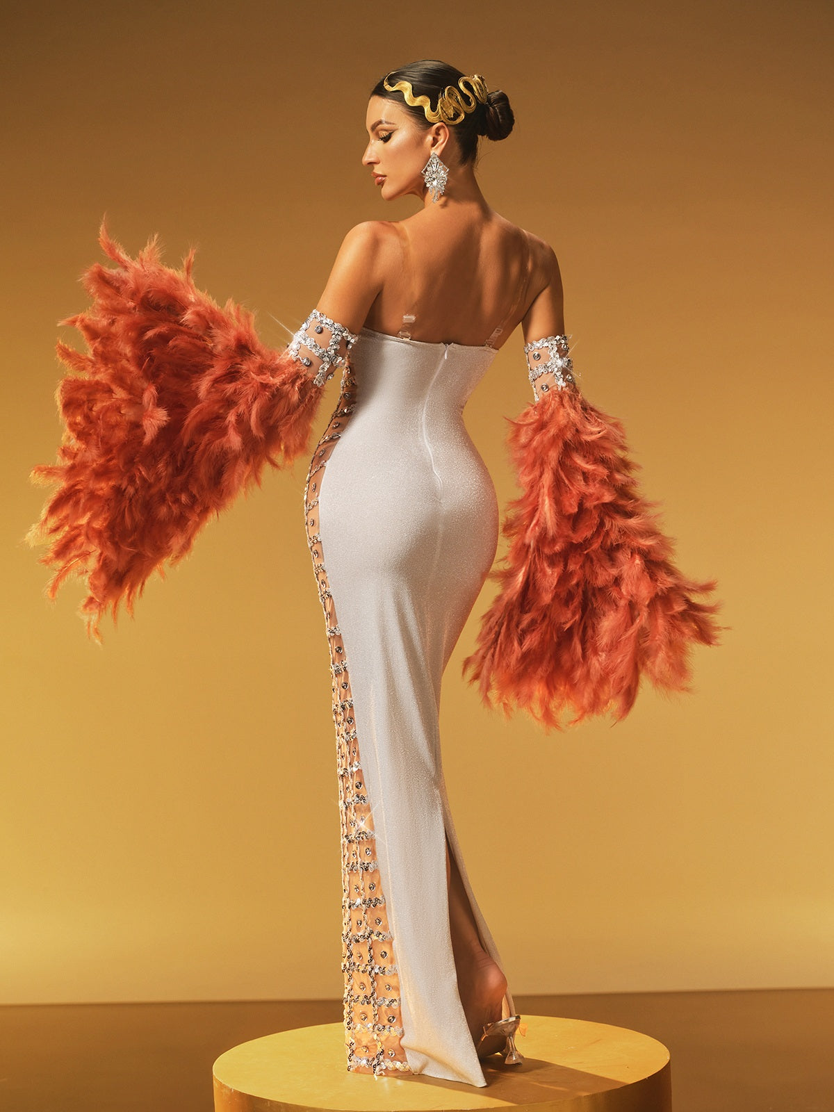 Hyrix Tüy Detaylı Kolları Sarkan Maxi Elbise ile stilinizi yükseltin. Zarif tüy detayları ve akışkan kolları ile bu elbise, şıklığı dramatik bir dokunuşla birleştiriyor. Ayrıntılı süslemeler, her etkinlikte unutulmaz bir izlenim bırakmak için mükemmel olan ince bir parıltı katıyor. Siluetinizi güzelleştirmek için tasarlanan bu elbise, özel günleriniz için hem konfor hem de zarafet sunuyor.